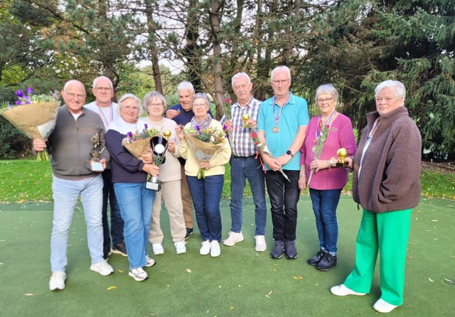 Ieder jaar sluiten de leden van Pitch & Putt-vereniging De Swing het zomerseizoen feestelijk af. Woensdag 22 oktober was het zover. Na het welkomstwoord van de voorzitter en de koffie met gebak, aangeboden door een jarige, konden we beginnen met het spelen voor de ‘nearest’.