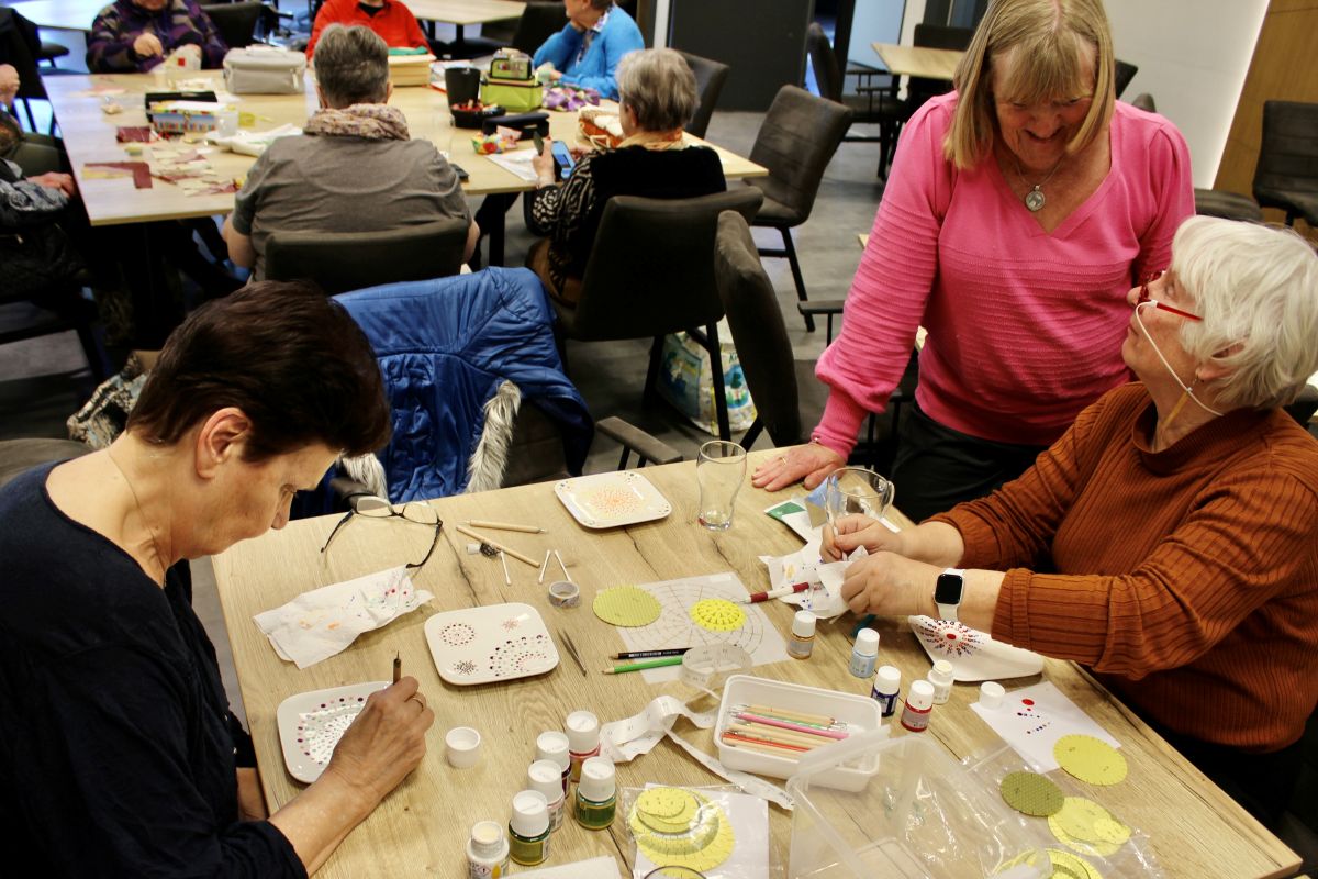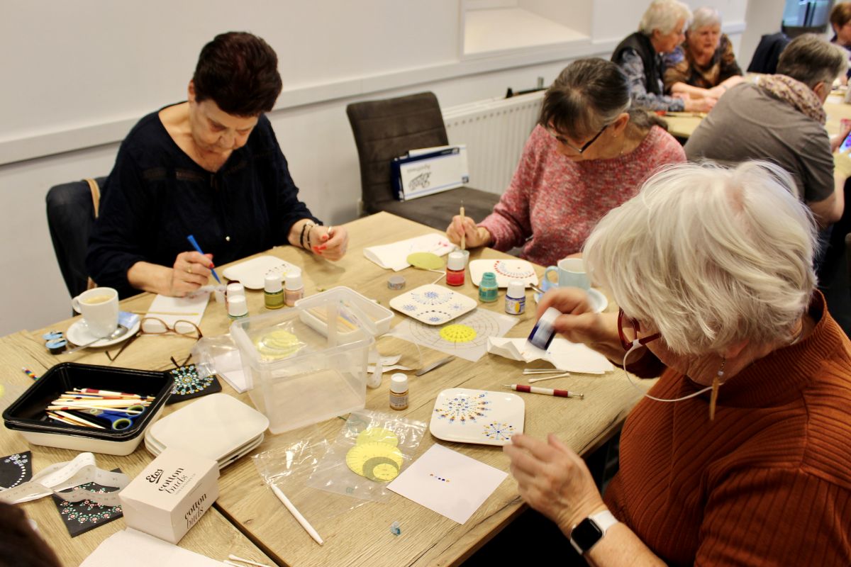 Dinsdagmiddag 17 maart kwam een groepje crea bea’s naar de Oase. Marian van Kessel, geassisteerd door Joke Robbers, verzorgde namelijk weer een workshop Stippen. Na eerdere workshops Stippen werd ook deze workshop met groot enthousiasme ontvangen door de SVR-leden.