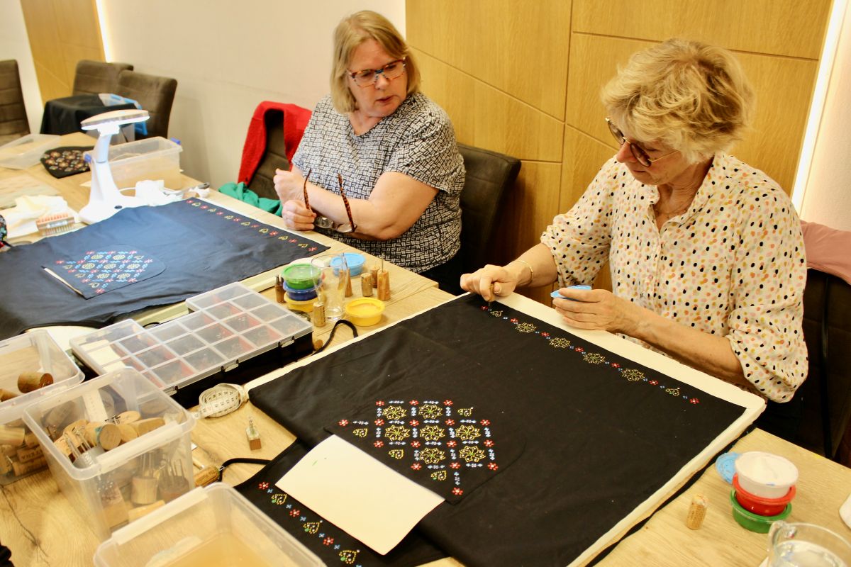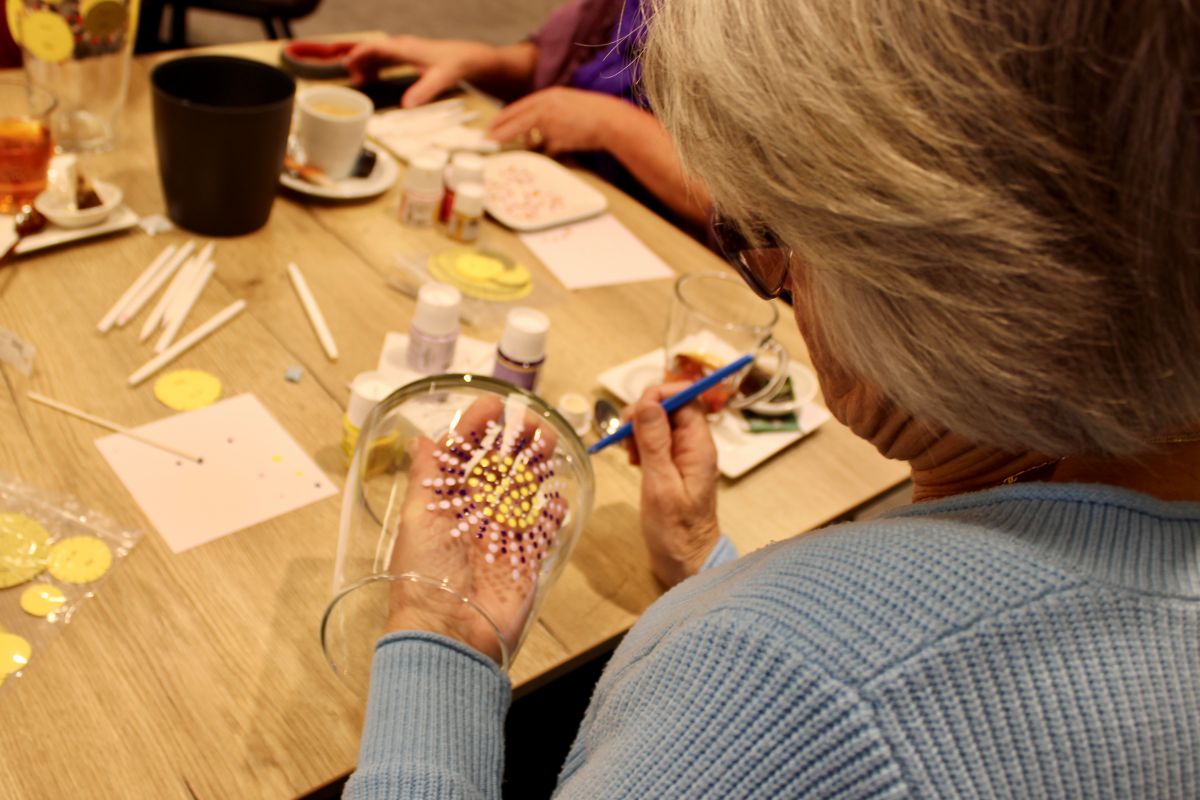 Marian van Kessel keek terug op een geslaagde middag: “Nog nooit hebben we zo’n grote variatie aangeboden aan stipwerk. Er was Staphorster stipwerk en er kon op diverse dingen gestipt worden met porseleinverf. Dit is met verschillende verf, daarom hebben we deze twee groepen van elkaar gescheiden om hen voldoende aandacht te kunnen geven. Voor de mensen die een schort gingen stippen was het een eerste kennismaking met Staphorster stipwerk. Enthousiast zijn ze aan de slag gegaan en zij lieten na afloop weten dat ze hopen dat er nog een keer een workshop komt. Voor de mensen die aan de gang gingen met porseleinverf waren er glazen vazen, porseleinen bordjes en leistenen onderzetters. Alles moet naderhand nog wel thuis afgebakken worden in de gewone oven. Het is even wat werk, maar dan heb je ook wel iets bijzonders in huis.”