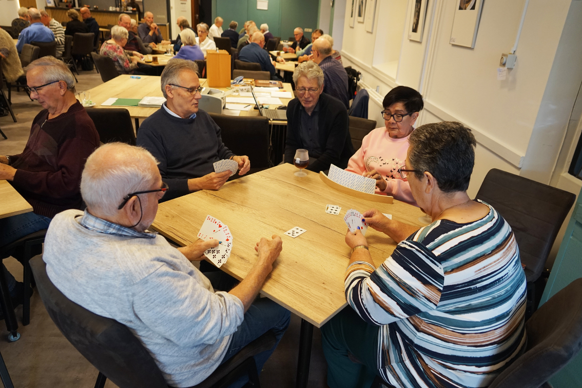 Het ‘passen’ en ‘rikken’ is niet van de lucht. Om kwart voor elf levert de tafel van Piet van Kuijk als eerste het wedstrijdformulier in. De eerste ronde wordt afgesloten met een hoogste puntentotaal van 152 voor Tonny Geerts en 24 voor Jan Broeders als laagste.