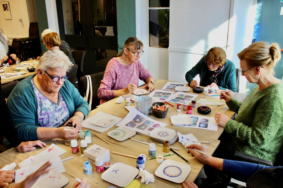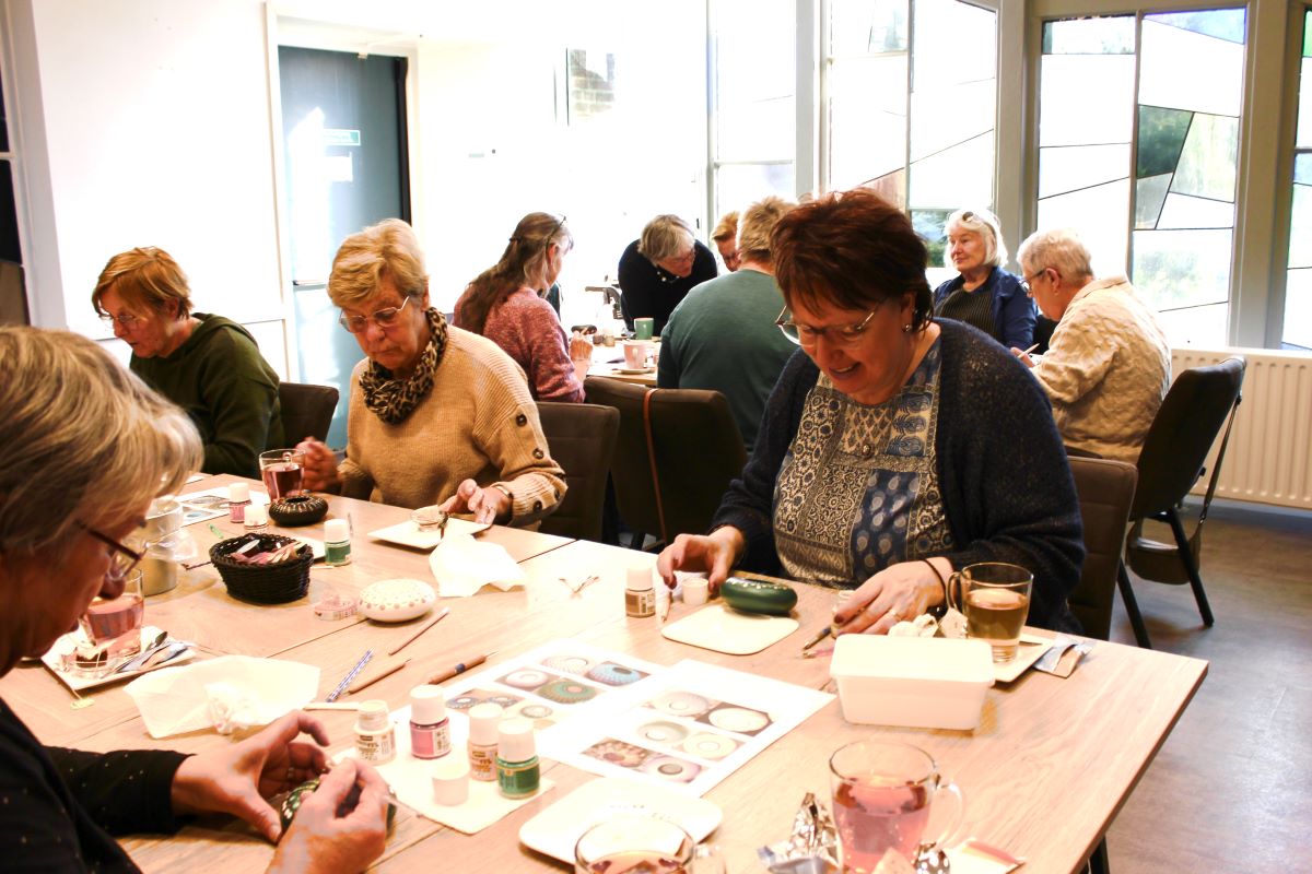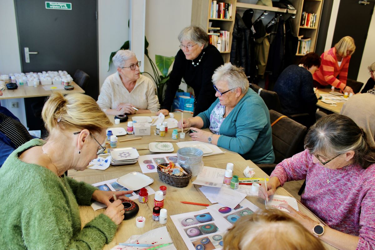 Donderdag 30 oktober konden onze leden aanschuiven voor een workshop waxinelichthouders stippen, onder leiding van Marian van Kessel. Dit was wel even wat anders dan voorgaande workshops.