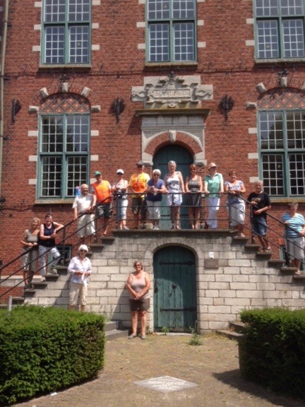 Via Molenschot ging de tocht langs Bavel naar Ulvenhout waar een sapje-in-het-gras werd aangeboden voor aanvang van de mooie route langs de Mark. Bij de paters in Meerseldreef was de koffie warm. Na het laatste stuk Mark kwamen de aardbeienvelden bij Hoogstraten in zicht. Zo te zien was het hard werken voor de vele plukkers in de genadeloze zon. In Castelre was de Castelhoeve speciaal voor ons geopend voor een warm of koud drankje. Hier kon ook de meegebrachte lunch worden genuttigd. Het raadhuis, sinds de samenvoeging met Hoogstraten niet meer in gebruik, staat er stilaan te verkommeren.