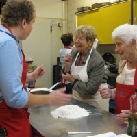 De eerste kookworkshop, Italiaans koken, vond plaats op dinsdagavond 13 oktober. Na een welkom en de kennismaking gingen de twaalf deelnemers onder leiding van Jets Theeuwes en haar zoon kok Jaap Theeuwes aan de slag.