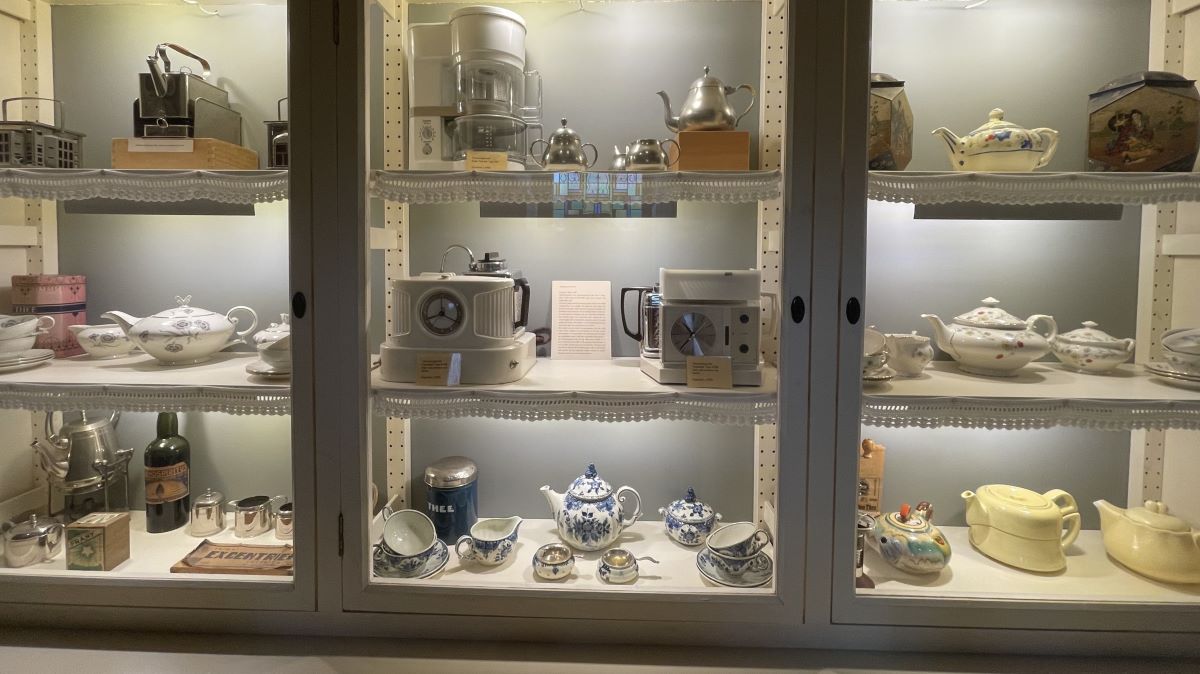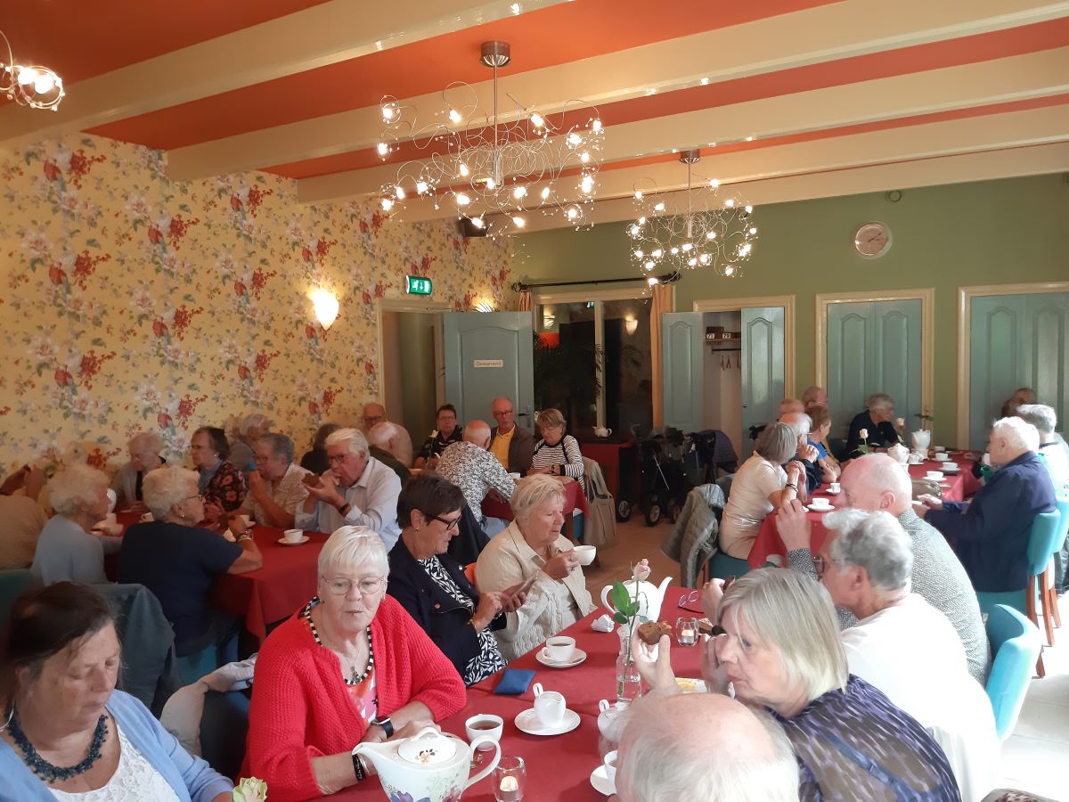 Via theatrale decors konden we het complete verhaal van de thee, van plant tot het drinken, volgen. Als afsluiting van deze interessante tentoonstelling nog een lekkere kop thee of koffie, en onze chauffeur Adrie maakte nog een groepsfoto in de fraaie theetuin. Via een andere route reden terug naar het hotel voor het diner en een gezellige avond.