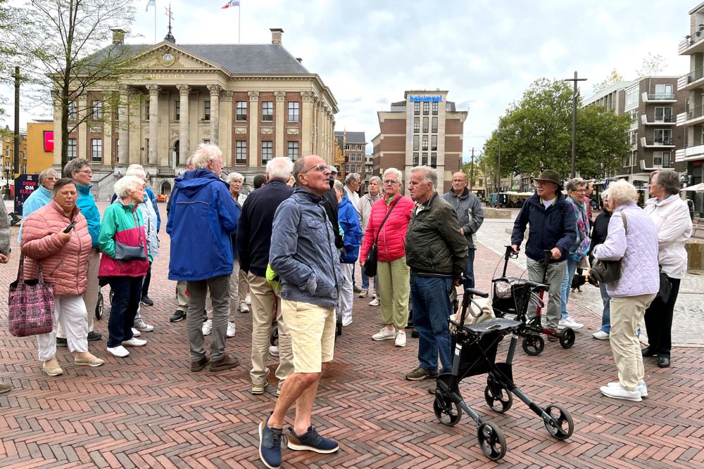 De rondleiding door Groningen bleek gehandhaafd, alleen wandelen werd comfortabel rondtoeren met de bus. De gidsen werden opgehaald en via de geluidsinstallatie in de bus konden zij, soms onder het rijden en soms stilstaand bij een bijzonder gebouw, uitleg geven. Toen later de regen plaats maakte voor een zuinig zonnetje, kon toch een gedeelte van Groningen al wandelend worden bewonderd. Interessant was het zeker, want Groningen is doordrenkt van geschiedenis, wat we ook terugzagen in de prachtige architectuur en de oude straatjes.