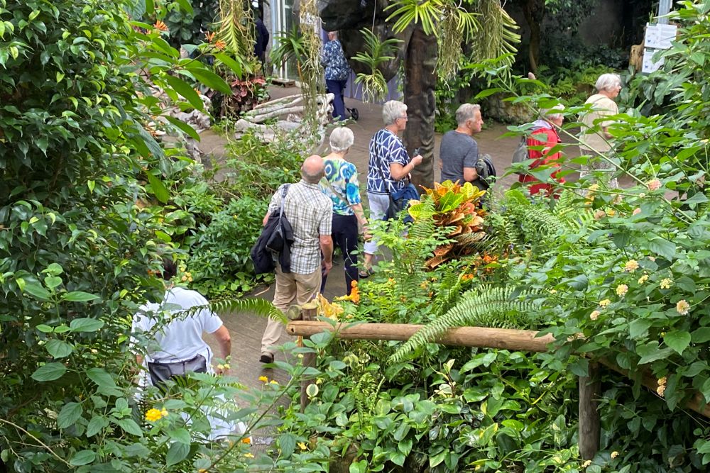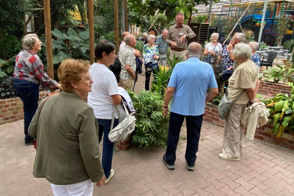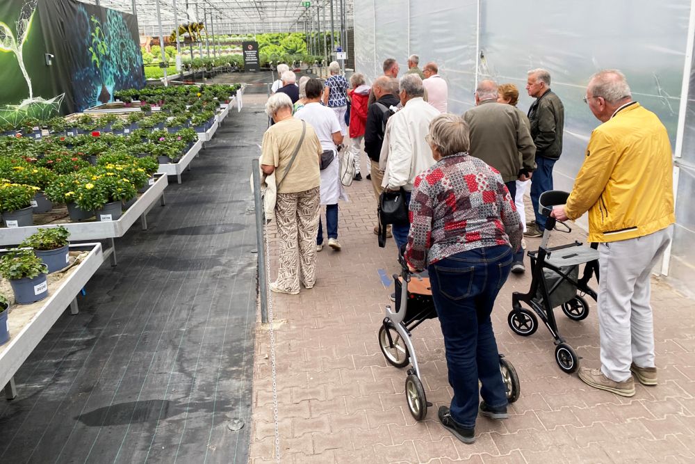 We kregen een kijkje achter de schermen van Europa's grootste perk- en potplantenkwekerij. Meer dan 300 miljoen planten per jaar worden vanuit de kassen getransporteerd naar afnemers over bijna de hele wereld. Met verbazing volgden we, via een lang en hoog gelegen wandelplatform, het volledig geautomatiseerde proces van ministekjes tot volledig ontluikende planten. De senioren genoten vervolgens van de aanliggende tropische tuinen en de verschillende exotische dieren. In de vlindertuin vliegen honderden tropische vlinders rond.