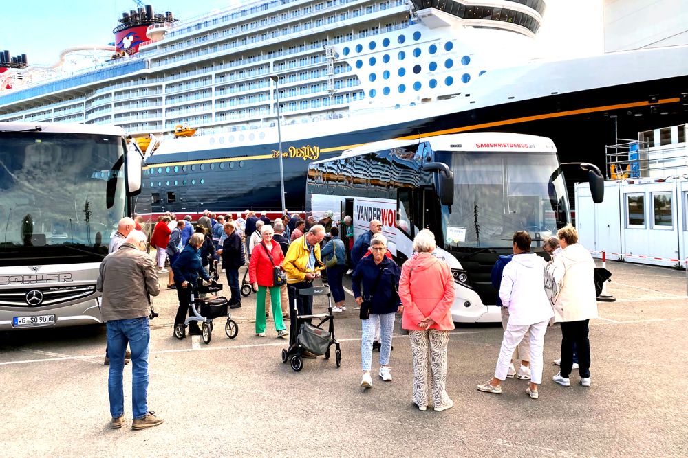 Woensdag: Vroeg opstaan voor weer een interessante excursie. Via het met zorg samengestelde programmaboekje en ook via de reisleider wisten we het al: opnieuw de grens over bij onze oosterburen naar Papenburg, net over de grens voor een bezoek aan de Meyer Werft.