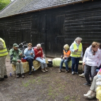 Bij de Oase werd het deelnemersveld al voor het vertrek in verband met de verkeersveiligheid in twee groepen gesplitst. Via Dorst, Bavel, Ulvenhout, via het Mastbos en allerlei zandpaden ging het naar de eerste stopplaats voor de koffie, naar Dennenlucht. Vervolgens fietsten we door het prachtige natuurgebied De Pannenhoef waar we op een bankje bij een boswachterswoning even pauzeerden: de benen strekken en wat uitrusten.