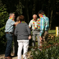 MET FOTO'S! “Het was een geweldig feest,” vertelde voorzitter Hanneke Tielen. Mooi weer! En er waren 54 deelnemers: leden met hun partners. De sfeer zat er al meteen goed in toen iedereen een ‘Hawaiislinger’ kreeg aangeboden. Een slinger die kriebelde aan je huid, wat meteen tot creatieve oplossingen leidde.